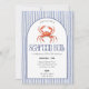 These customizable invites feature a watercolor portrait of a crab for a seafood boil.