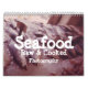 This is a calendar featuring photographs of raw and cooked seafood.