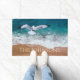 Gorgeous seagull flying over the sea waves surf at the shore.