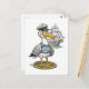 Illustration of a seagull dressed as a sailor, standing on coiled rope with a sailing ship in the background. Maritime setting with nautical elements and expressive character design.