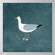 A cheeky seagull standing by the deep green ocean. Perfect for those who love sassy birds and the coast. Original art by Nic Squirrell.