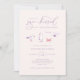 Whimsical and rustic beach theme bridal shower invitation featuring illustration of seagulls and a crab in pastel colours. The text says "join us for a sun-kissed celebration."
