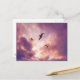 Seagulls flying in a sunset sky postcard