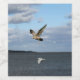 Two seagulls with New Waterford, Cape Breton, Nova Scotia in the background. The gull that looks like he is dirty is a juvenile Herring Gull and the one below is a breeding adult Ring Billed Gull.