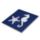 Mixed media digital rendition of a seahorse and starfish in white against a dark navy blue background