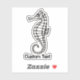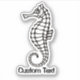 Stylized black and white icon of a seahorse. Custom Text.