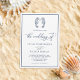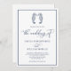 This classic minimal white and navy blue wedding invitation design is perfect for coastal and nautical themed and beach destination weddings, with 2 cute seahorses kissing at the top, elegant script calligraphy, and a frame around the edge.