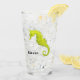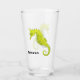 A watercolor of a vibrant yellow seahorse adorns this customizable glass!