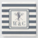 Seahorse Nautical Monogram Navy Blue Stripe Stone Coaster