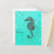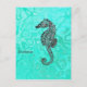 Seahorse on Aqua Splash Turquoise Marble Pattern Postcard