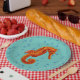 This cute orange seahorse is great for kids events, pool and beach parties or nautical themes. Add a name and change the background colour in the custom section.
