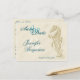Let all your family and friends know to save the date with this summery seahorse card. Card is fully customizable and features a seahorse impression in the sand design. All lettering, the bride & groom's names, the wedding date and all pertinent information, is in two coordinating shades of blue.
