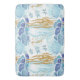 Spruce up your bathroom with this beautiful ocean bottom pattern bathroom mat featuring seashells, seaweeds and starfish in blue and gold glitter. Ideal gift for the anniversary, wedding or housewarming occasion.