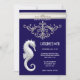 Seahorse theme summer beach birthday navy white invitation