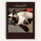 Journal in an illustration of a beautiful seal point Siamese cat lounging on a couch, rendered as a digital watercolor effect portrait. for Siamese cat lovers = with an editable name