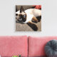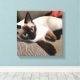 Canvas in an illustration of a beautiful seal point Siamese cat lounging on a couch, rendered as a digital watercolor effect portrait