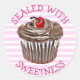 Sealed with Sweetness Pink and chocolate Cupcake Stickers. Cute for sealing a girl's birthday party invitations or for party favour treat bags.