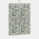 Seamless repeating pattern featuring stylized blue, yellow, and white floral motifs with green vines and leaves on a cream background.