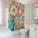 Seamless colourful patchwork tile with Islam, Arabic, Indian, ottoman motifs. Majolica pottery tile. Portuguese and Spain decor. Ceramic tile in talavera style. Vintage illustration.