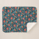 A beautiful sherpa blanket with a seamless paper floral pattern against a blue background.