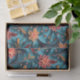 A beautiful tissue paper with a seamless paper floral pattern against a blue background.