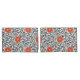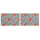 Seamless floral pattern with vibrant orange flowers and navy blue leaves on a beige background, creating an ornate, symmetrical design.