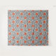 Seamless floral pattern with vibrant orange flowers and navy blue leaves on a beige background, creating an ornate, symmetrical design.