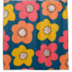 Seamless flower pattern. Bold florals Scandinavian flat style repeating background. Botanical minimalistic doodle flowers pink coral orange yellow on blue backdrop.