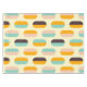 A seamless geometric pattern features vertical, oval shapes in soft yellow, teal, peach, orange, and brown, creating a retro, playful vibe.
