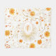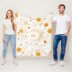 This seamless pattern blanket features stylized golden suns with radiant lines in varying sizes, set against a crisp white background. Scattered throughout are abstract floral and star-like shapes in warm orange and gold tones, connected by swirling golden lines that create a flowing, energetic rhythm. Bright and decorative, this design evokes warmth, positivity, and a dynamic celestial aesthetic—perfect for sunny, bohemian, or mystical-inspired themes.