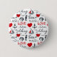 Seamless nautical pattern with nautical symbols (sailing boat, anchor, waves, seahorse, seashell) and red hearts decoration with text design on white background