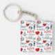 Seamless nautical pattern with nautical symbols (sailing boat, anchor, waves, seahorse, seashell) and red hearts decoration with text design on white background