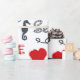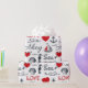 Seamless nautical pattern with nautical symbols (sailing boat, anchor, waves, seahorse, seashell) and red hearts decoration with text design on white background