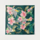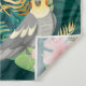 Seamless pattern cute cockatiel parrot sits on green leaves and pink flower. Cartoon animal design flat on green background