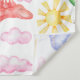 Seamless pattern depicting coloured dinosaurs, rainbow, pink clouds. Isolated on a white background. Watercolor hand drawing.