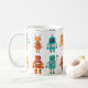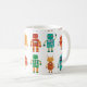 Seamless pattern from colourful retro robots in a flat style on a white background. Vintage illustration.