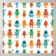Seamless pattern from colourful retro robots in a flat style on a white background. Vintage illustration.