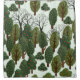 Seamless pattern, green forest with different trees. Red fruits on trees, deciduous shrubs, and just trees without leaves. There is a white background.