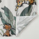 Seamless Pattern Hand Drawn Botanical Illustration Pantera, Leopard and Exotic Birds Wildlife in Jungle Forest Tropical Leaves with Red Hibiscus Flowers Red Blossom on Blue Background Hand drawn Art