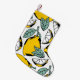 Seamless pattern of bright hand drawn lemons,halfs small christmas stocking