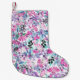 Seamless pattern of purple flowers and berries,blu small christmas stocking