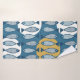 Seamless pattern with blue fish inspired by scandinavian folk art. Scandinavian design illustration. Decorative with nordic fishes. Seamless marine background.