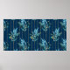 Seamless pattern with blue leaves and stripes poster