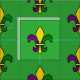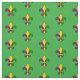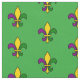Fabric with a seamless pattern with a fleur-de-lis; yellow, purple, and green fleur-de-lis in the colours of the New Orleans Mardi Gras celebration; on a green background