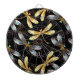 Seamless pattern with gold, jewellery, shiny dragonflies with detailed, sparkling wings on black background. Gold dragonfly.
