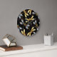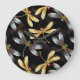 Seamless pattern with gold, jewellery, shiny dragonflies with detailed, sparkling wings on black background. Gold dragonfly.
