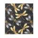 Seamless pattern with gold, jewellery, shiny dragonflies with detailed, sparkling wings on black background. Gold dragonfly.
