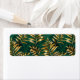 Seamless pattern of gold, jewelry, shiny fern branches and leaves on green, woodland, textured background. Golden fern.