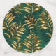 Seamless pattern of gold, jewelry, shiny fern branches and leaves on green, woodland, textured background. Golden fern.