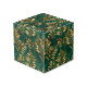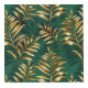 Seamless pattern of gold, jewelry, shiny fern branches and leaves on green, woodland, textured background. Golden fern.